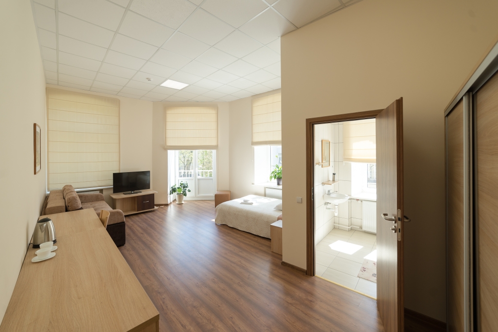Svečiams siūlomi 29 kambariai. Svečių patogumui apartamentuose įrengtos virtuvės, erdvus valgomasis, veikia savitarnos skalbykla. Sudaryta galimybė apsistoti asmenims su negalia.