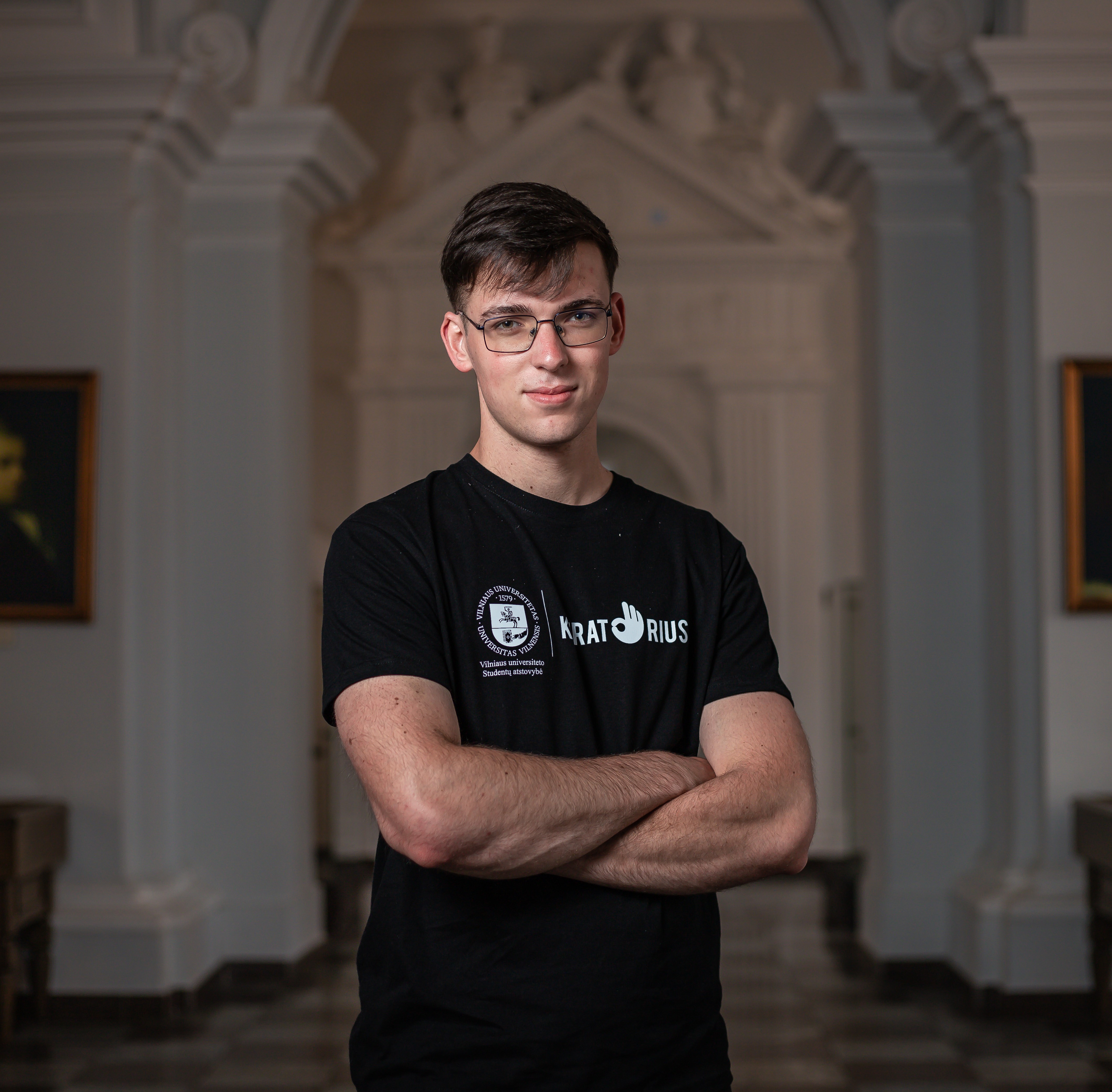 Rinkdamasis studijų kryptį niekada nesusidūriau su karjeros dvilypumo klausimu: žinojau, kad ateitį siesiu su teise. Ši disciplina mane žavi savo prestižu, kuri Vilniaus universitete yra formuojama srities profesionalų – dėstytojų. Jie turi sukaupę ne tik didžiulę patirtį, bet ir geba sudominti kiekvieną studentą savo dėstomais dalykais, be to, dėstytojų entuziazmas ir atsidavimas teisei įkvepia bei motyvuoja siekti aukščiausių mokslinių pasiekimų. Svarbiausia, didžioji dalis specialistų aktyviai dirba teisės srityje, tad visa tai suteikia studijoms praktinės vertės realaus gyvenimo kontekste.Studijų metu Vilniaus universiteto Teisės fakultete supratau, kad galiu pasiekti labai daug, rinkdamasis karjeros kelią nuo advokatūros iki darbo tarptautinėse organizacijose ar valstybinėse institucijose, taip pat supratau, kiek daug galiu duoti kitiems būdamas tiek fakulteto, tiek Studentų atstovybės bendruomenės dalimi.