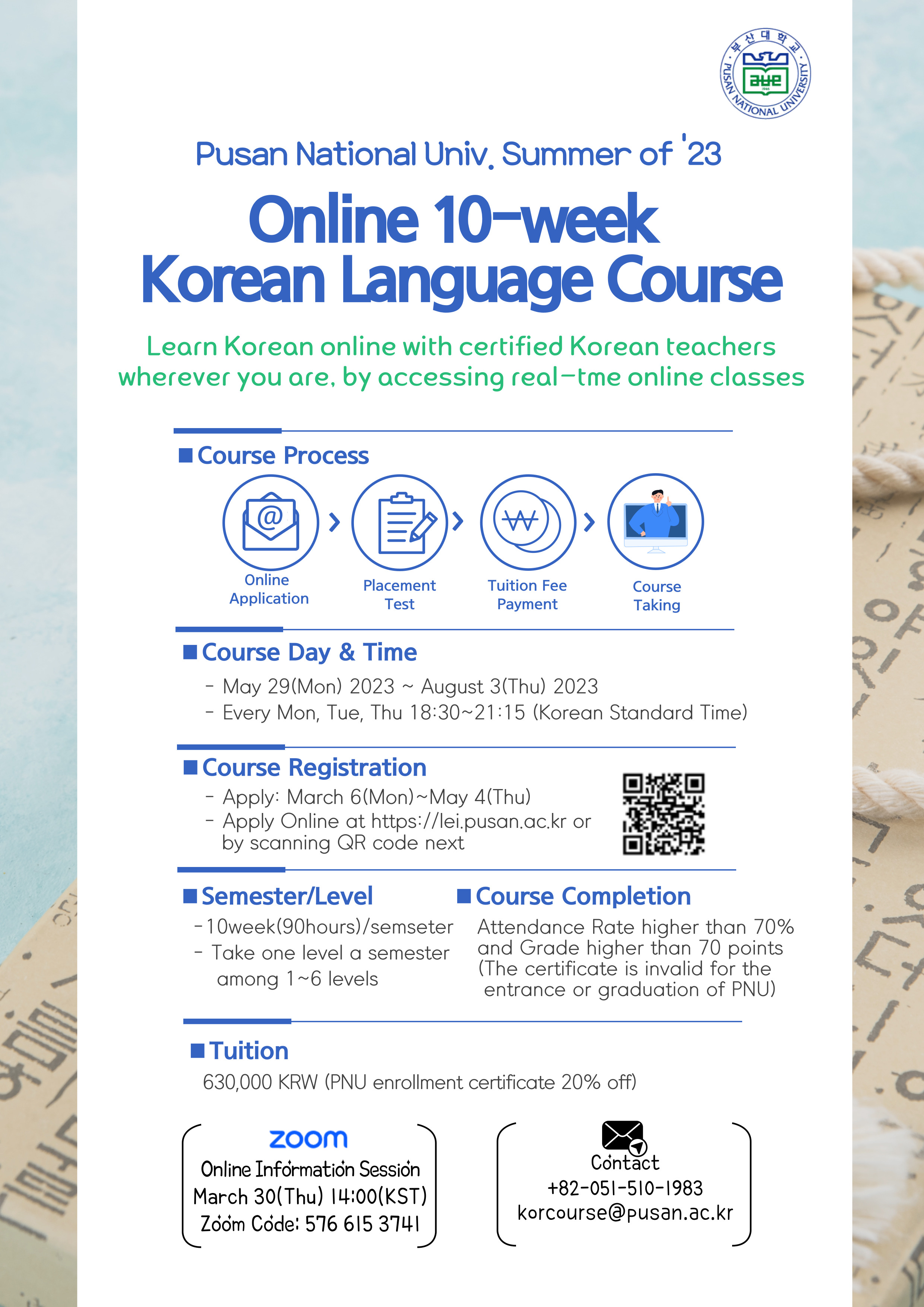 - Pusan National University Summer School and online Korean Language program (Republic of Korea) (if interested, contact )